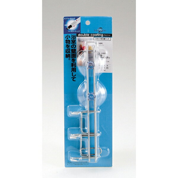 バススタイル ダブルコーティング スライド式4連フック 吸盤付き (H-8838) 【RCP】【バス用品】【浴室用品】【お風呂】【バス】【バスルーム】【浴室】【スポンジ】【ブラシ】【小物ラック】【バスフック】【フック】【収納】【整理】【店頭受取対応商品】