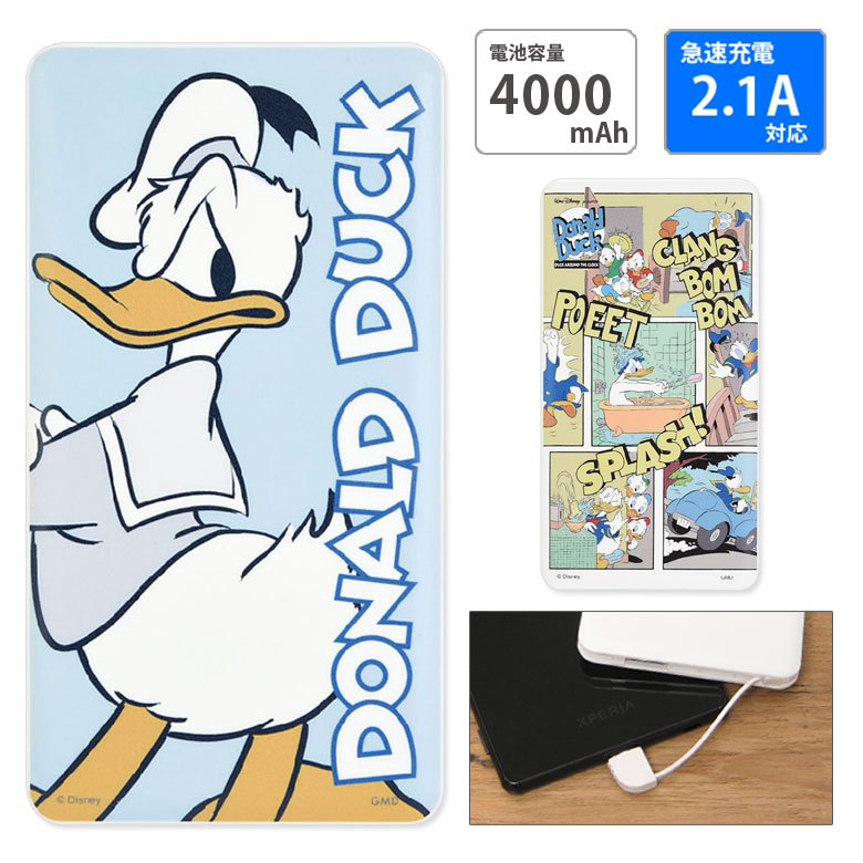 【PSE適合品】ドナルドダック 急速充電 USB出力 スマホ充電器 2.1A 4000mAh ディズニー ドナルド 青 水色 ブルー 充電器 リチウム充電器 おしゃれ キャラクター モバイルバッテリー iPhone Android コンパクトサイズ