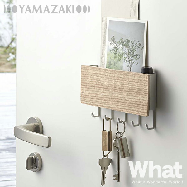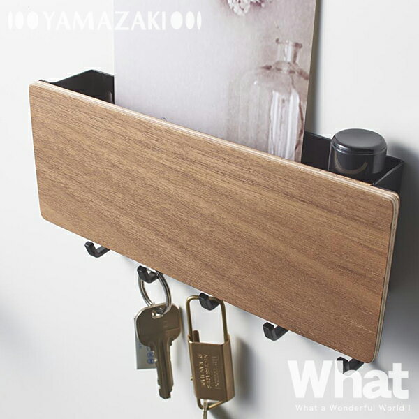 【仕様】 サイズ: 約W18×D3×H9.5cm 素材: スチール(粉体塗装)、天然木積層合板 重量: 約280g 耐荷重: 約900g 付属品: マグネット×1、木ねじ×2